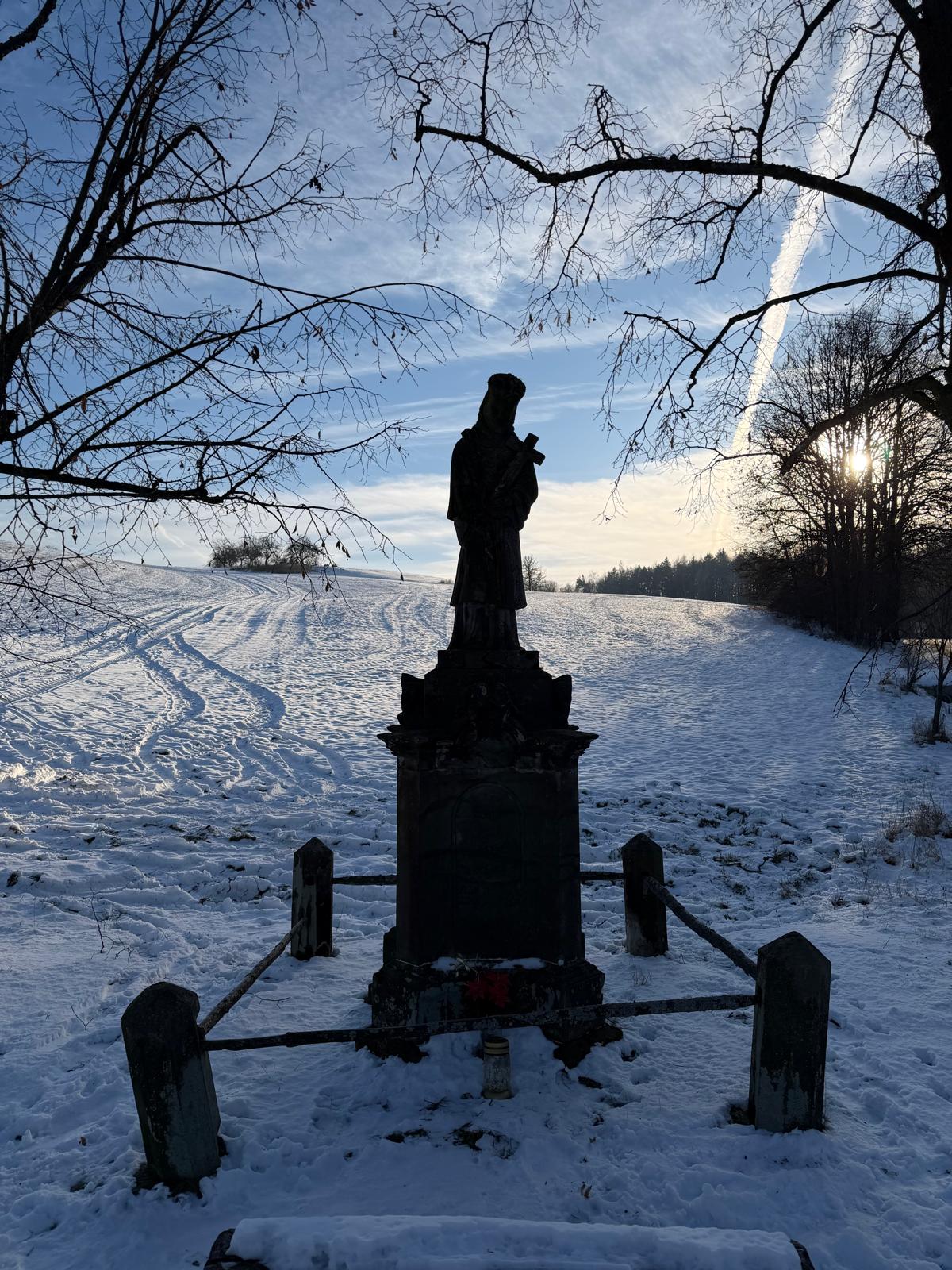 Na místě bývalého mostku, nyní v prudké zatáčce silnice spojující Libošovice a Mladějov, stojí socha sv. Jana Nepomuckého (viz foto výše). Jako poctu svému patronu ji dal vysochati malechovický rodák Jan Bohumil Novák v roce 1889 u soboteckého kameníka Havlíka. Nápis na soklu říká: "Svatý Jene Nepomucký, oroduj za nás." V období květu smetanky lékařské slouží socha k prezentaci dětských uměleckých výtvorů z této byliny.